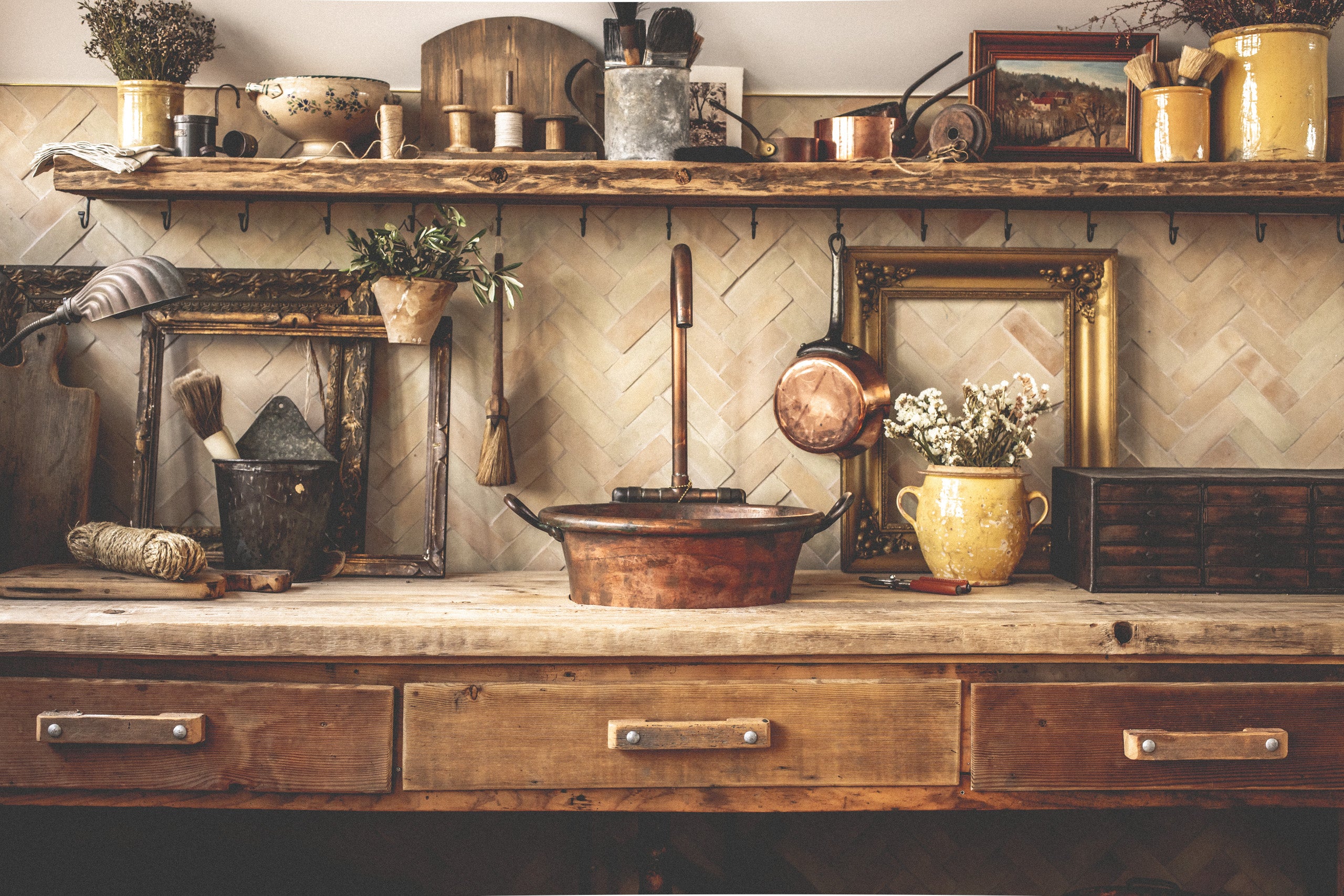 Beautiful Antique French 19th century farmhouse buffet deux corps crafted from solid pine or fruitwood in a warm honey-toned wood patina, hand-cut joinery and iron hardware from the Alps