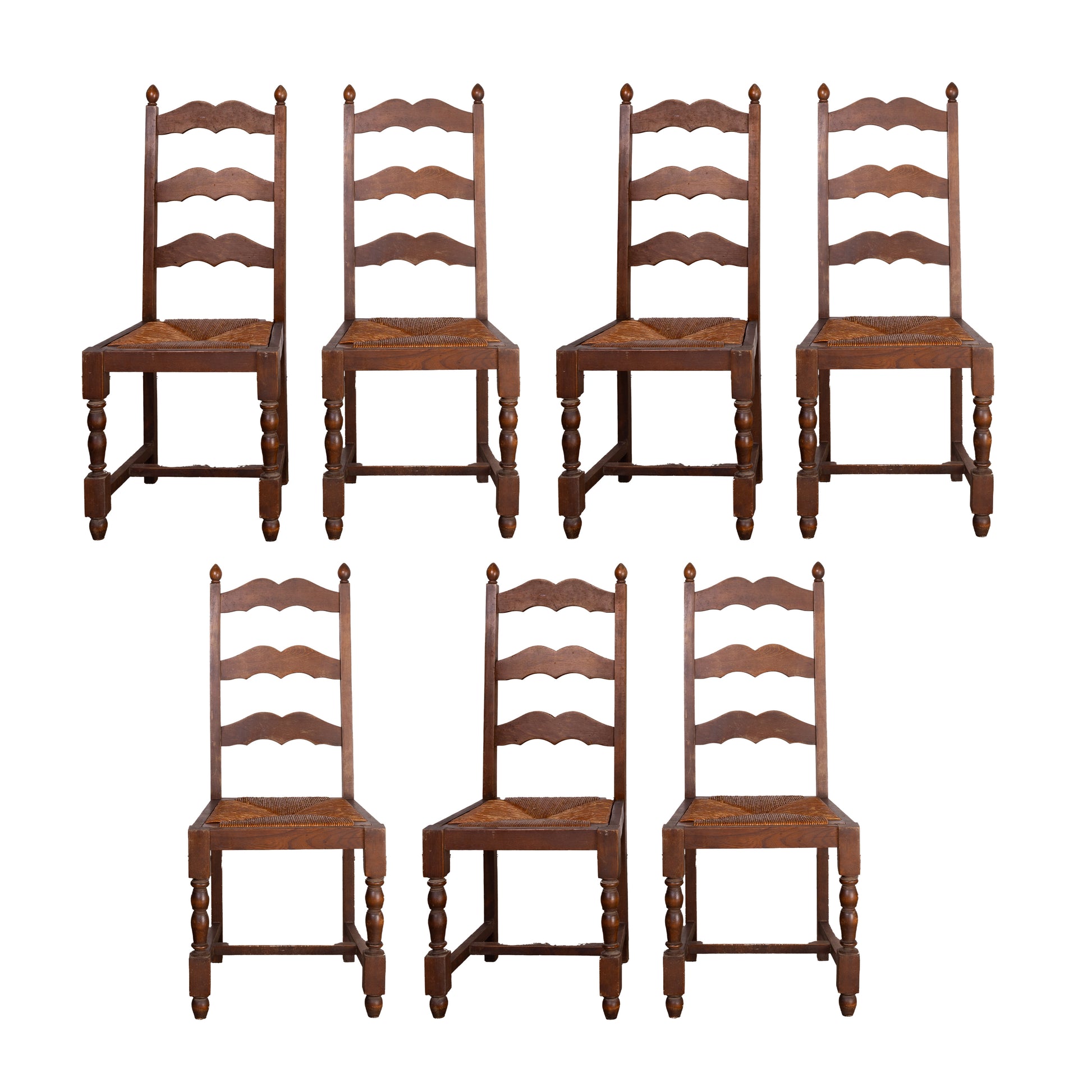 - Set of 7 antique French wicker ladder back dining chairs from Lyon