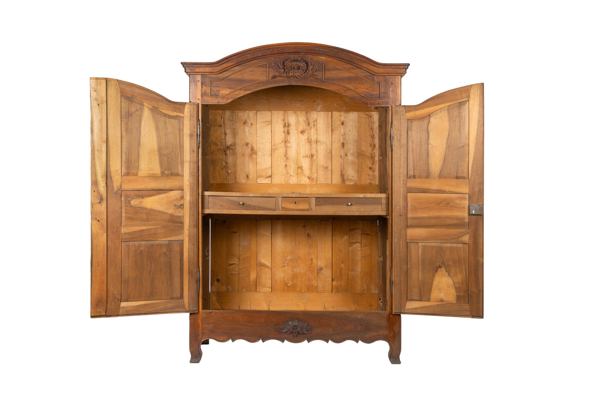 Antique French 19th Century Walnut armoire with beautiful carvings to the facade from Provence.