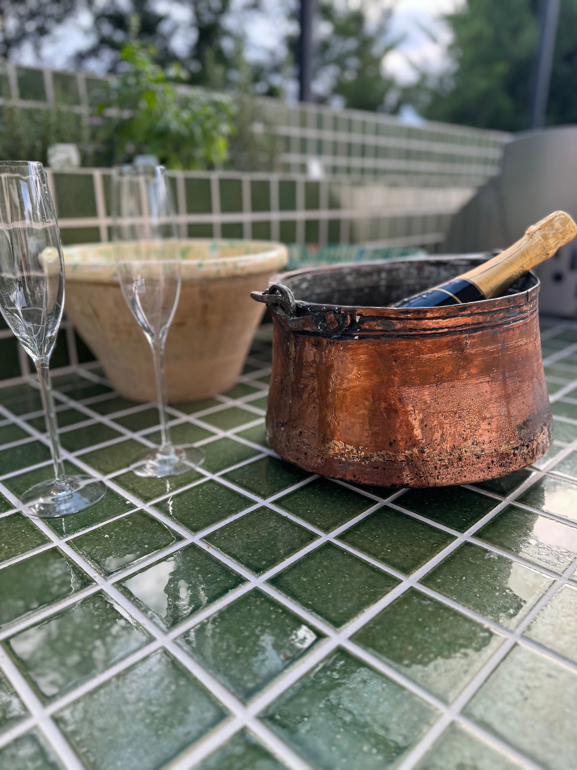 Beautiful antique French copper champagne bucket from the French Alps