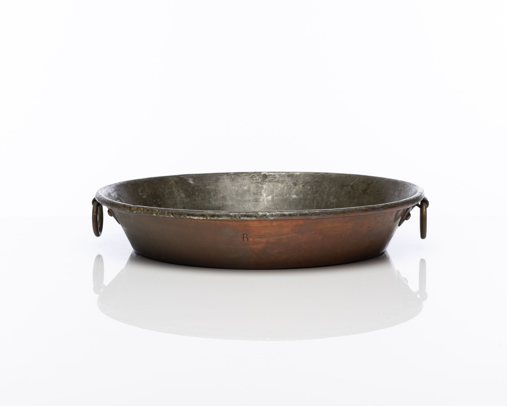 Illuminate your kitchen with this exquisite Beautiful Antique French Copper pan from the French Alps. Crafted with precision and elegance, it serves as a stunning centrepiece for your dining table. Display fruit or serve oysters on ice in style and impress your guests with this truly unique piece.