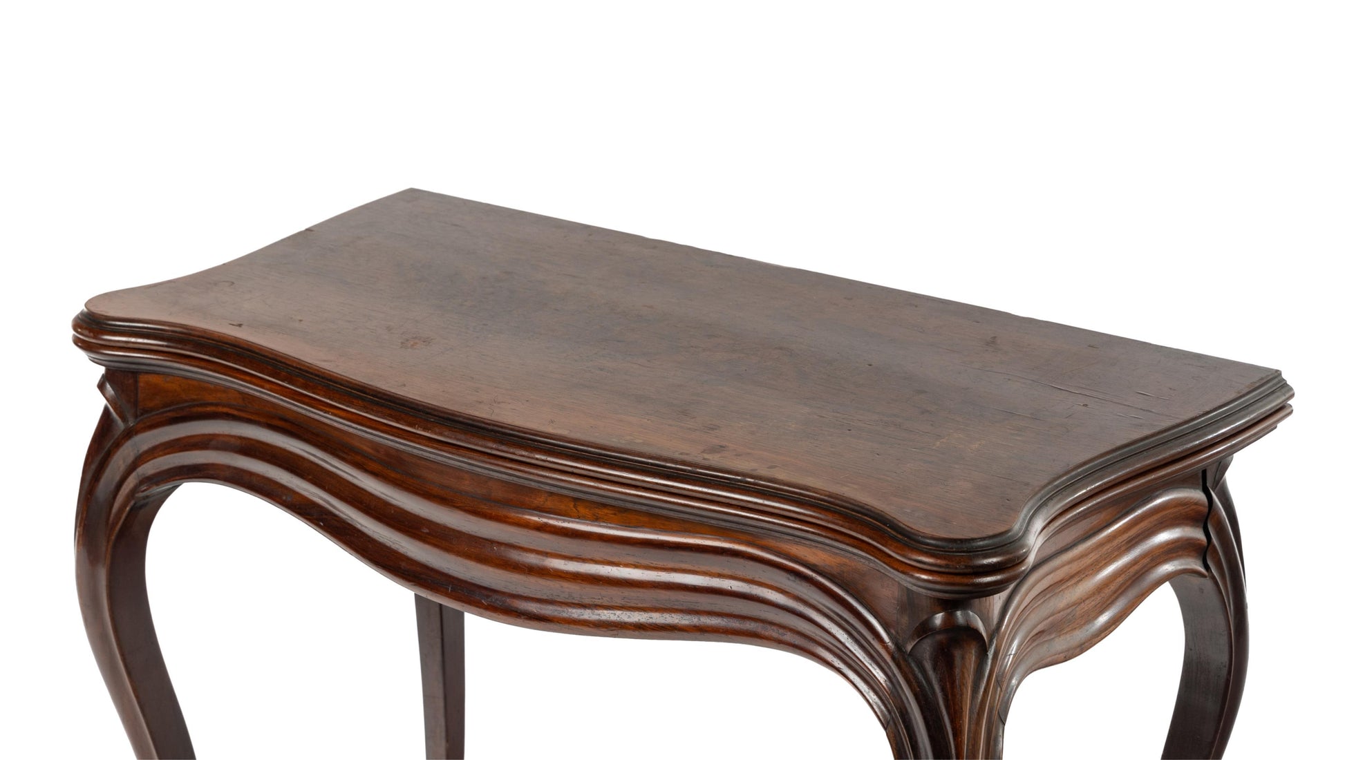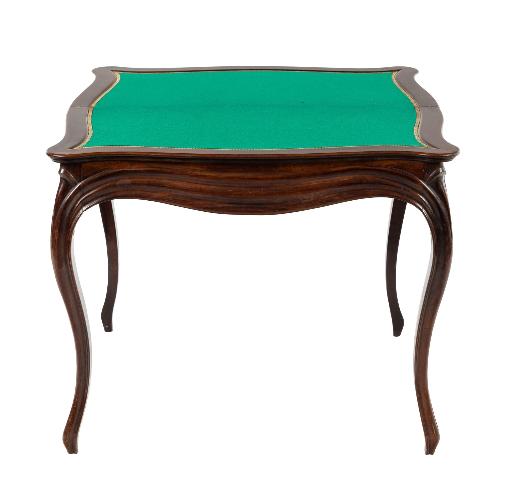 Elegant 20th century French side table with fold out felted Game Table. Discovered in Paris.