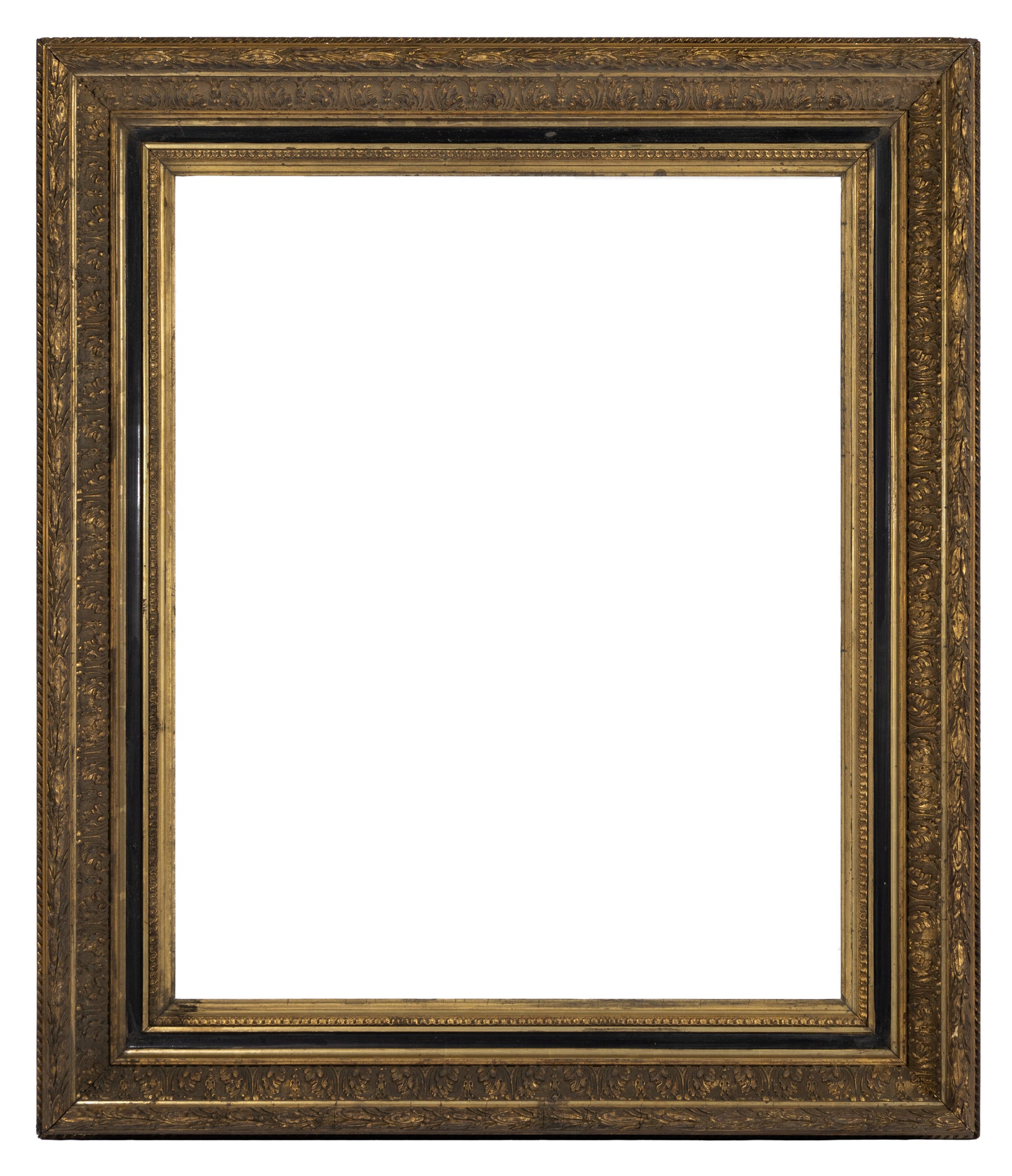 Impressive Antique French 19th Century giltwood frame, its richly carved deep moulding with dark gilded patina gives it a regal, museum quality presence