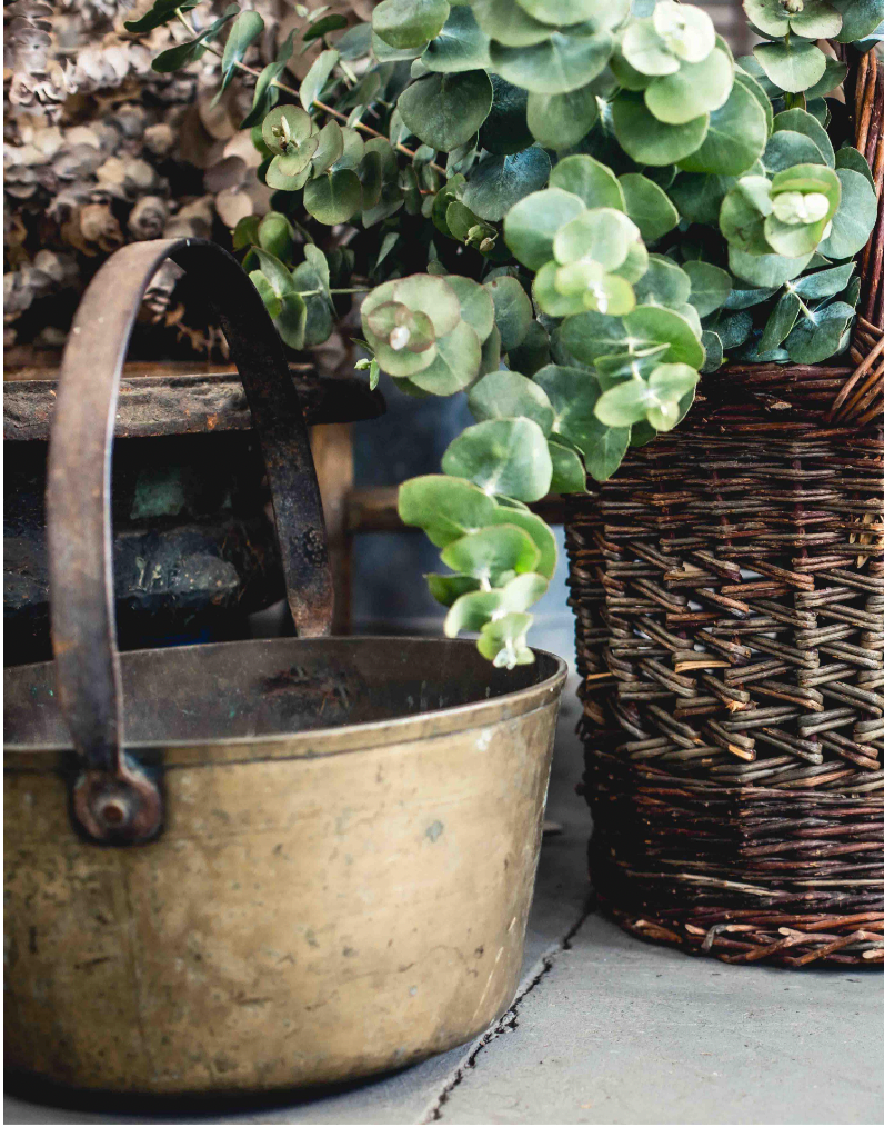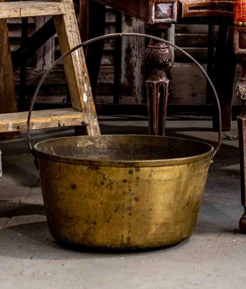 Lovely antique French solid brass basin with iron handle, from the French Alps