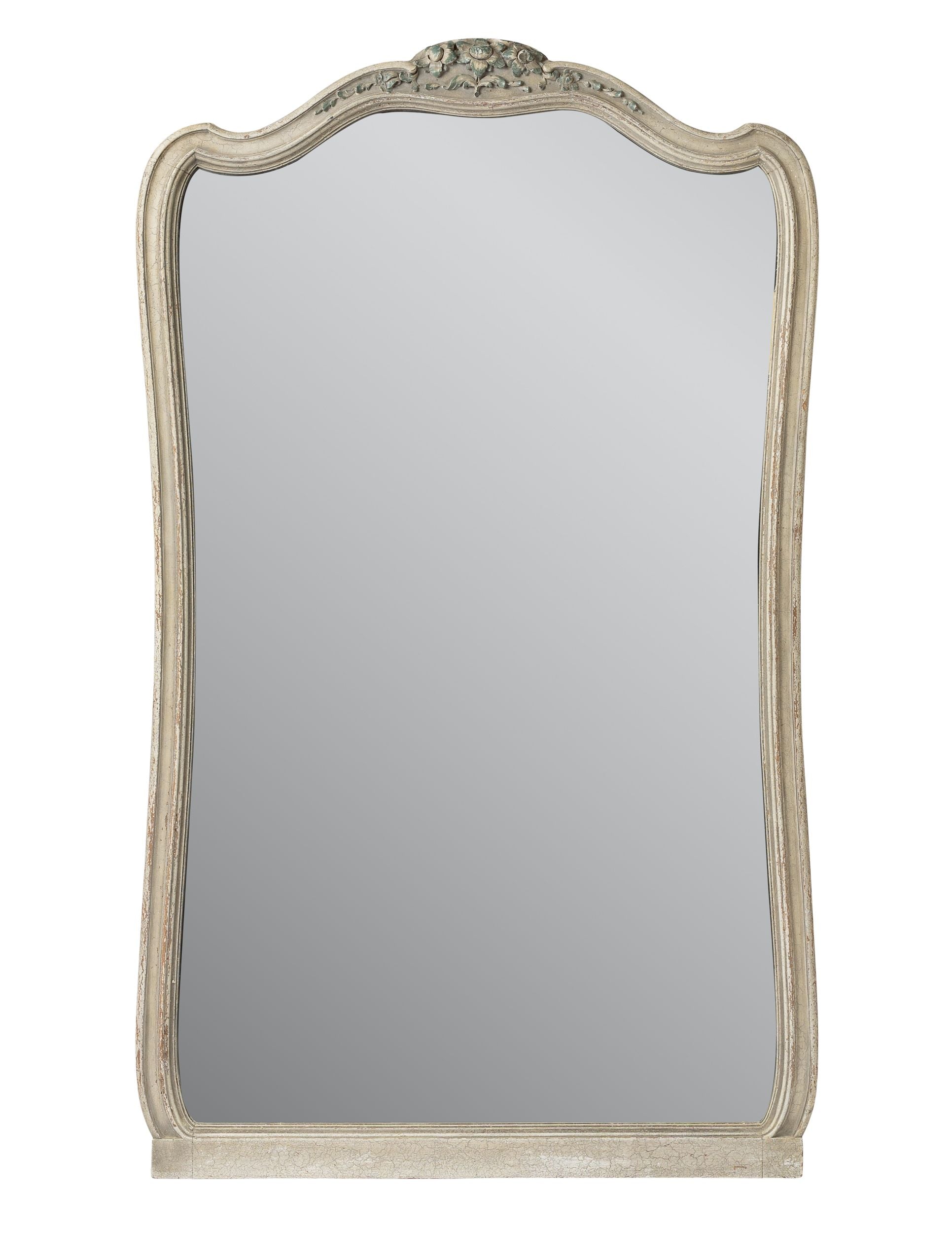 Antique French Grey Painted Large Mantle Mirror with floral carvings from Provence
