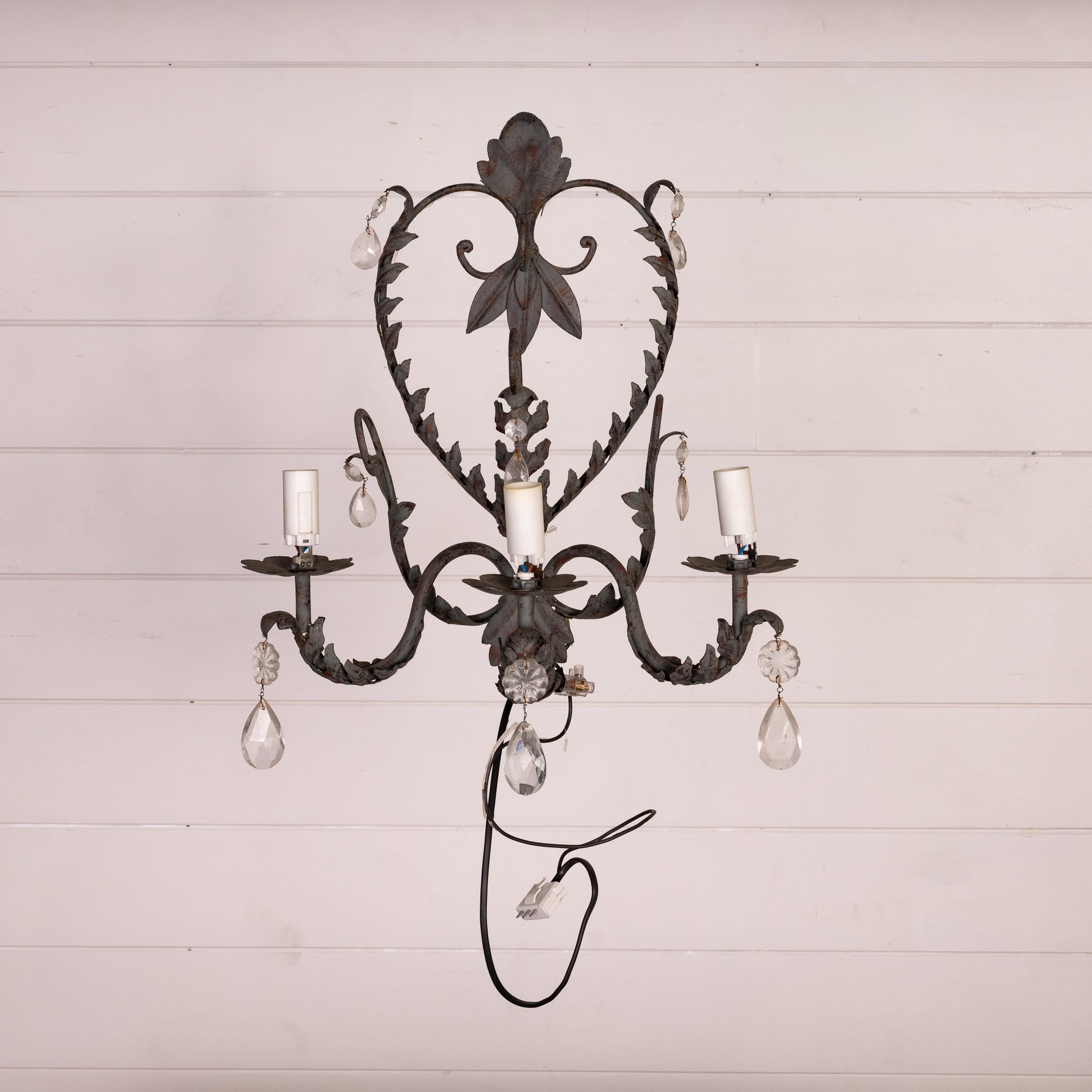 Vintage French Wall Sconce from Provence featuring drop crystals and floral motifs - requires rewiring to Australian standards
