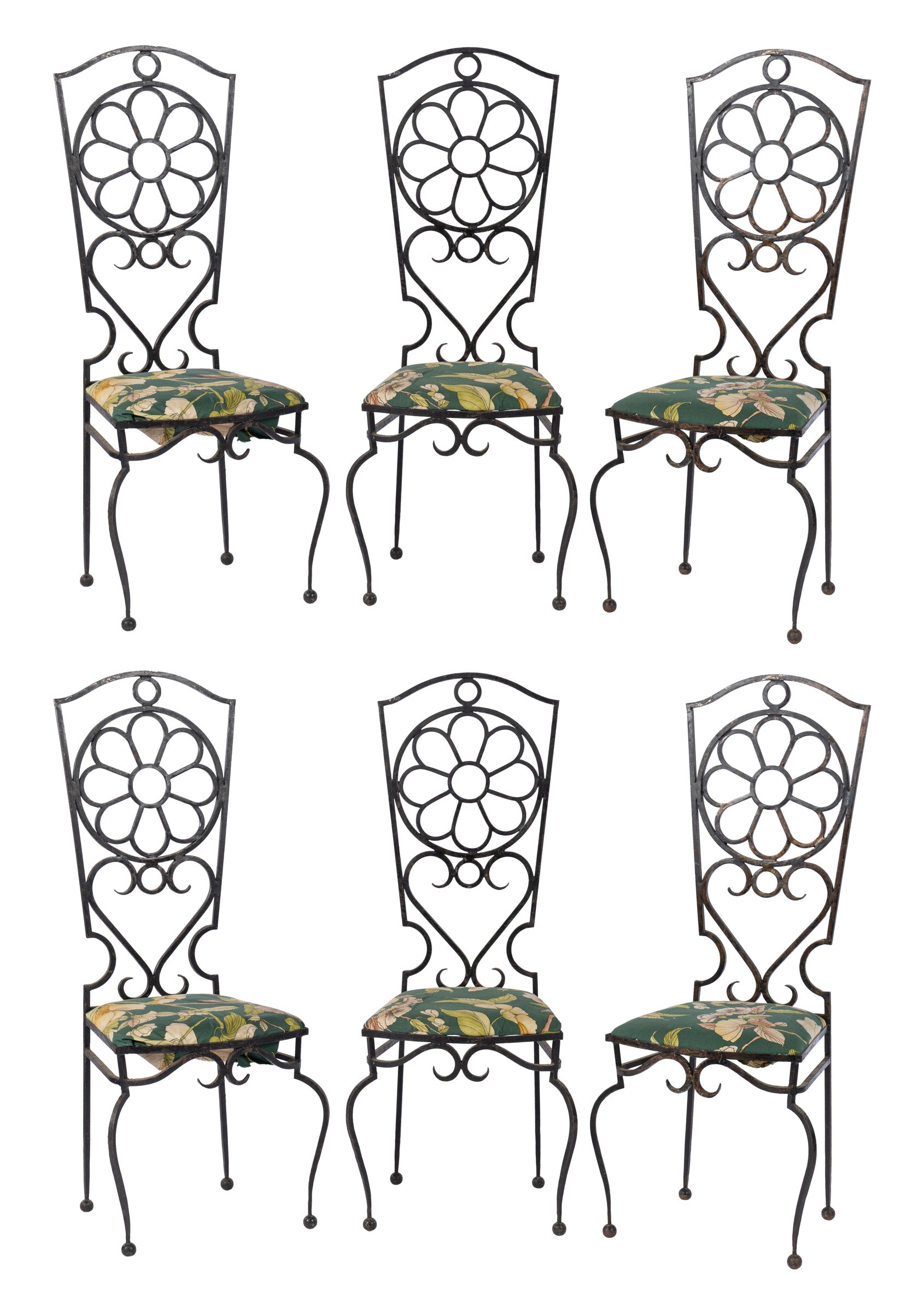 Set of 6 heavy, high quality and collectible mid-century wrought iron chairs - likely from the 1950's-1960's excluding a blend of Art Nouveau and Mediterranean revival style and found in Provence