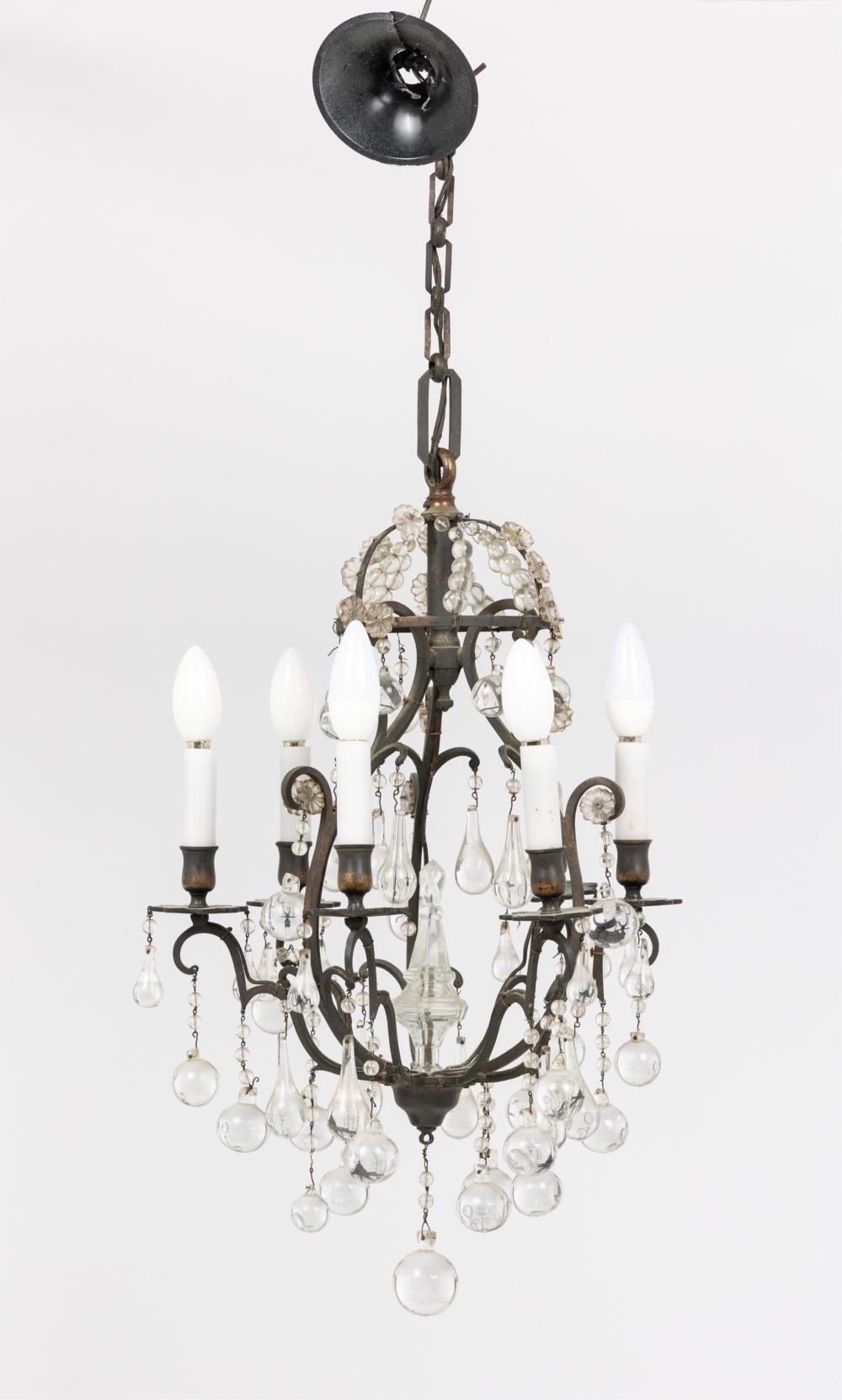 Stunning 6 light antique French brass Chandelier with Glass bauble drop crystals from Paris