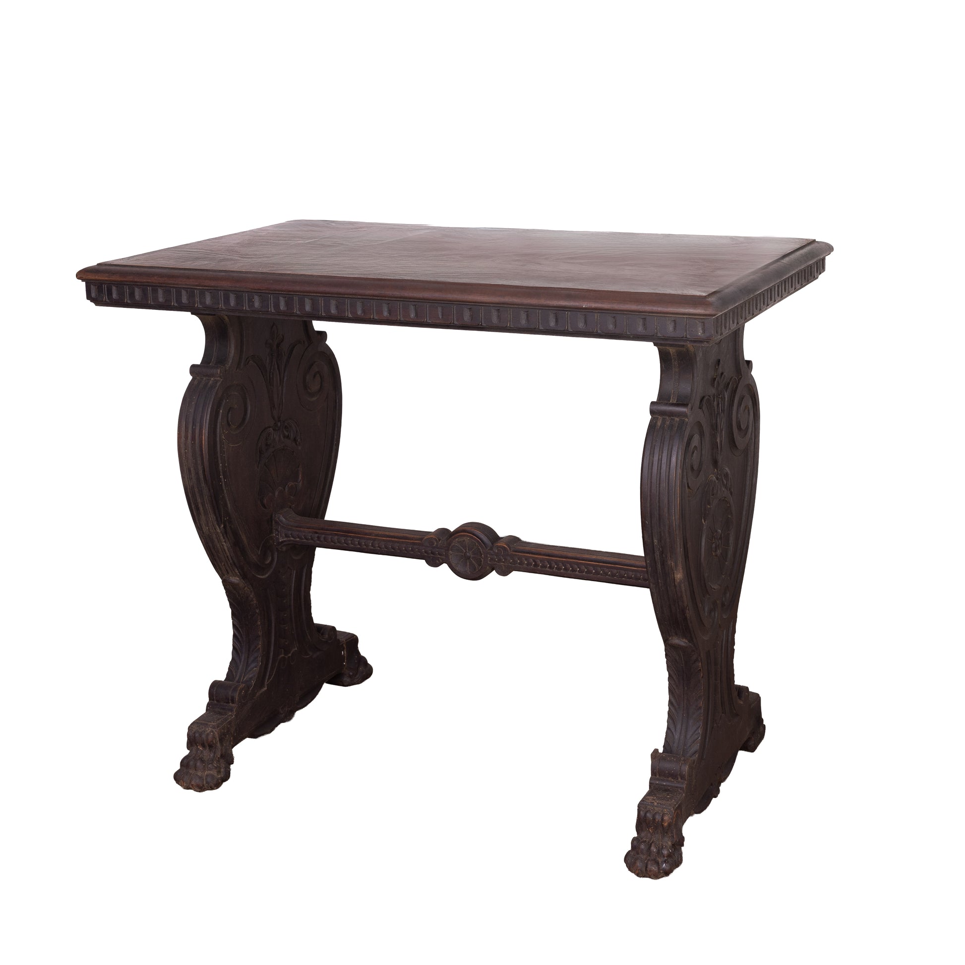 Beautiful 18th century hall console table from a chateau in the Alps with decorative carvings and detailed stretcher base