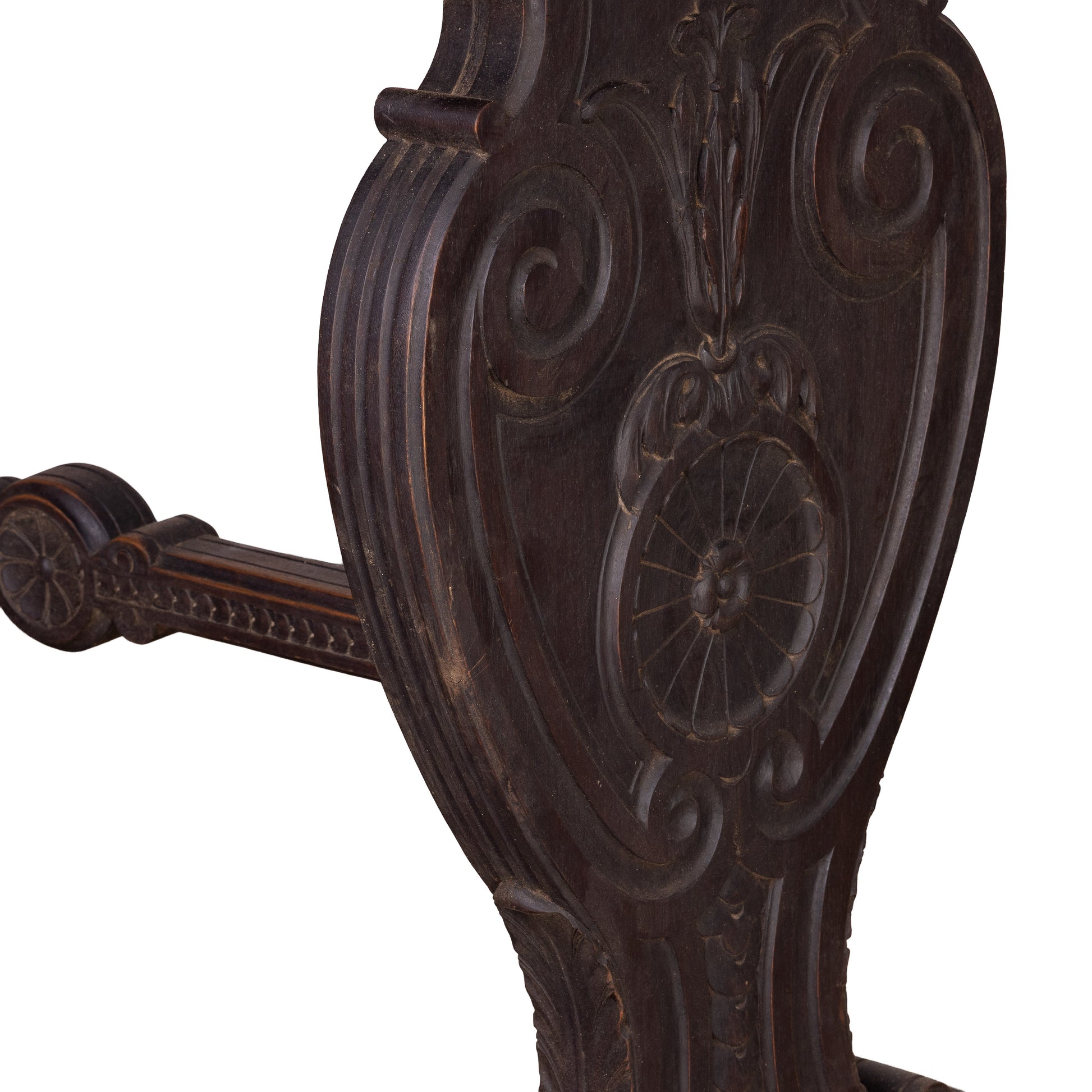 Beautiful 18th century hall console table from a chateau in the Alps with decorative carvings and detailed stretcher base - walnut