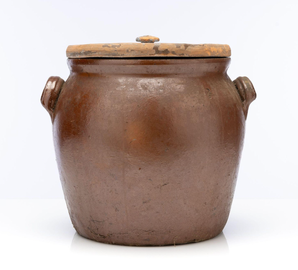 Vintage French glazed pot with lid, from Provence
