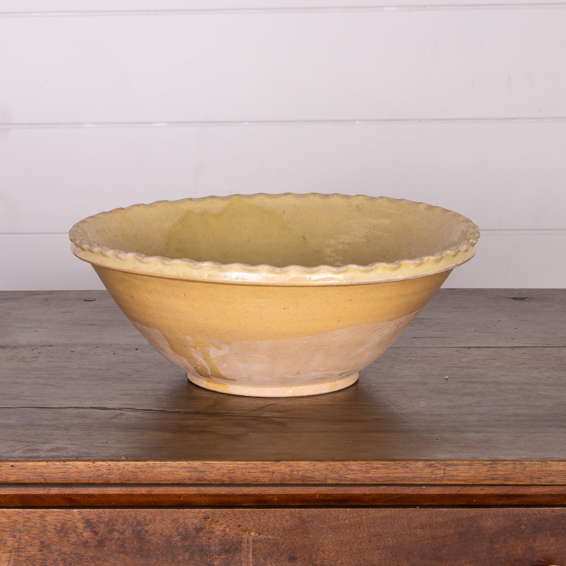 Beautiful early 19th Century Provincial Terracotta large hand-thrown bowl with yellow glaze